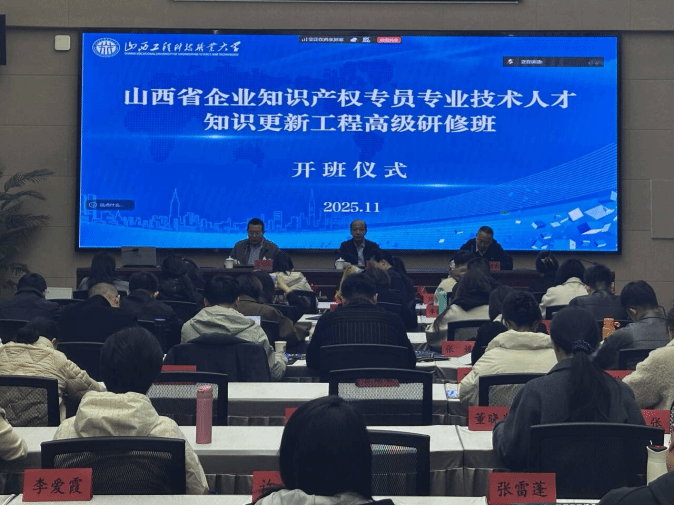 2025年11月10日上午9时,山西省企业知识产权专员专业技术人才知识更新工程高级研修班,在山西工程科技职业大学2号图书馆北楼一层教室顺利开班。山西省市场监督管理局(知识产权局)知产规划处处长贾贵臣、山西省知识产权保护中心副主任王大江、山西工程科技职业大学党委委员、副校长李锦元以及全体高研班学员参加,开班仪式由山西省知识产权保护中心副主任王大江主持。